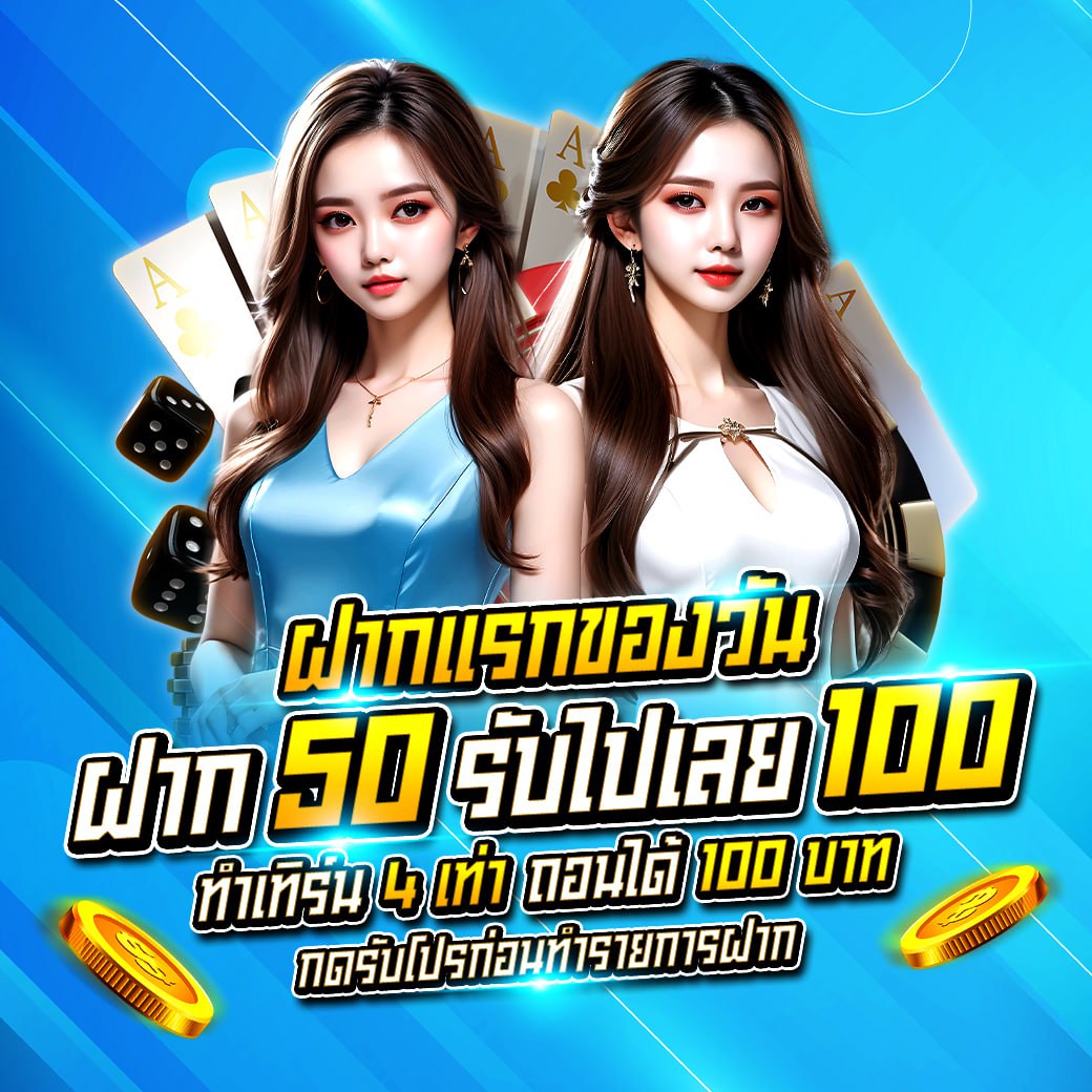 ฝากเเรก 50 บาทเท่านั้นรับโบนัสทันที 50 บาทรวมเป็น 100 บาท
